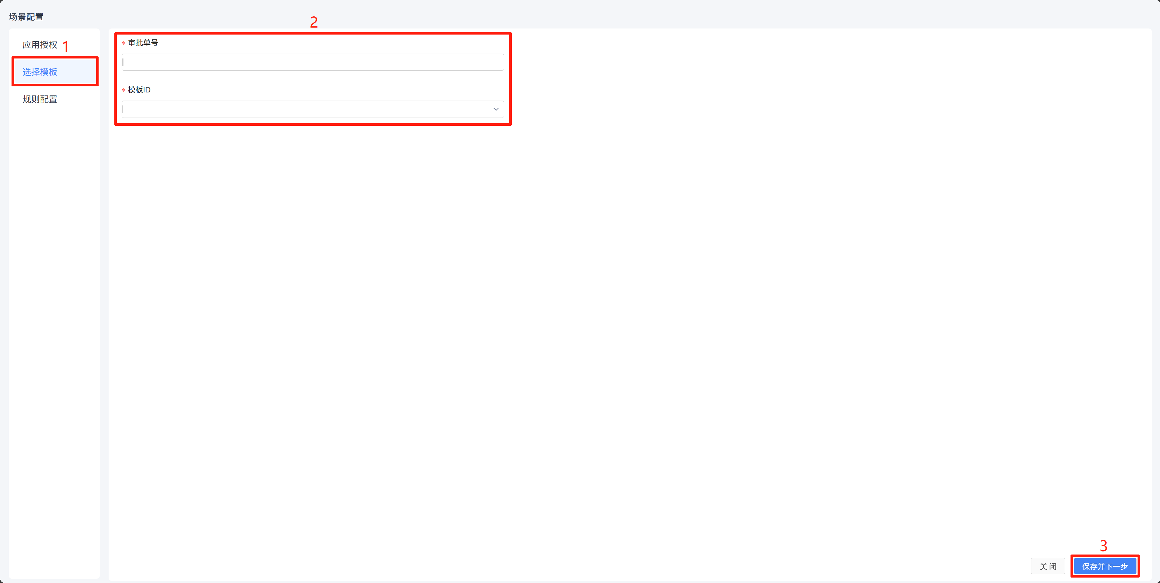 在选择模板中可以选择模板的审批单号和模板ID。